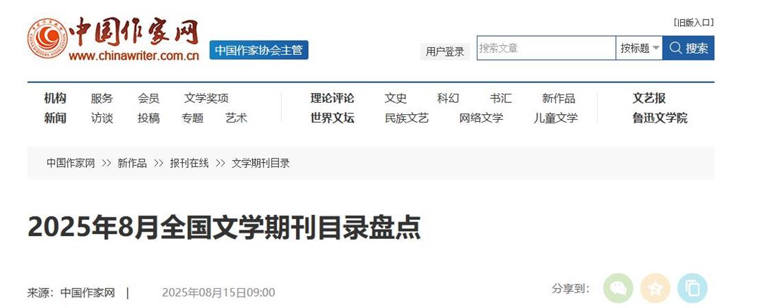 2025年8月全国文学期刊目录盘点(练建安《河石记》发表于《福建文学》)
