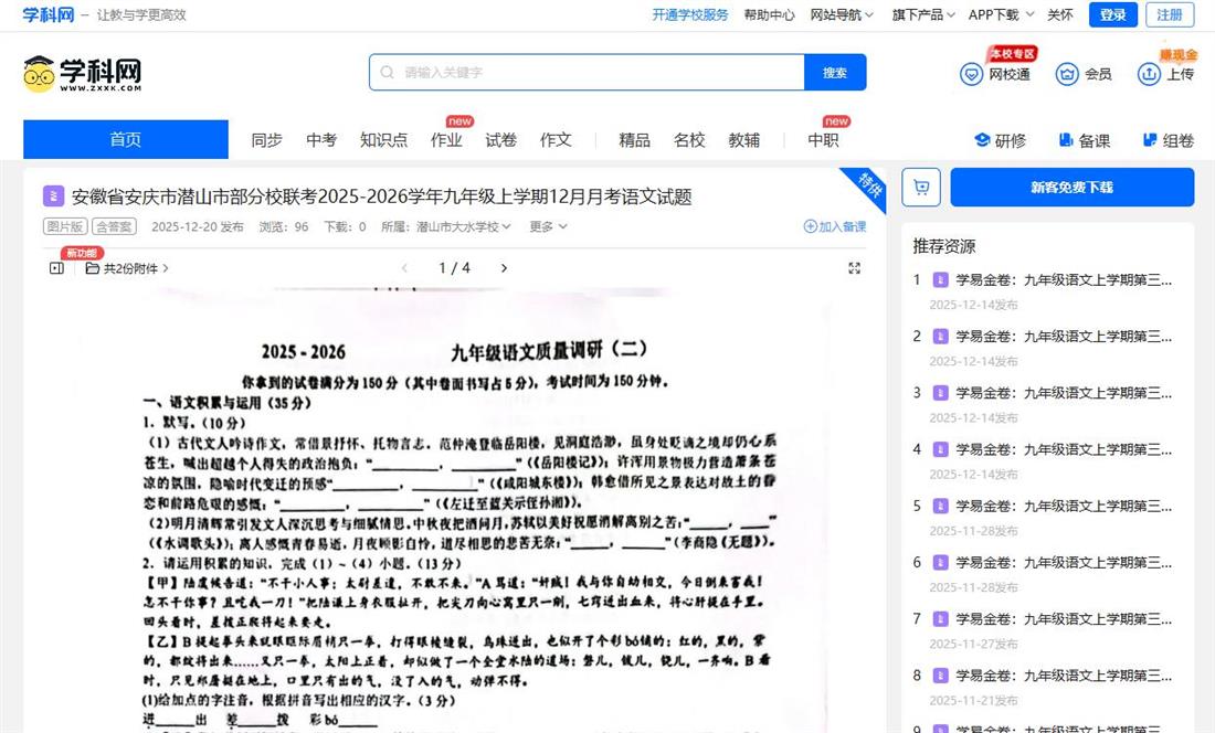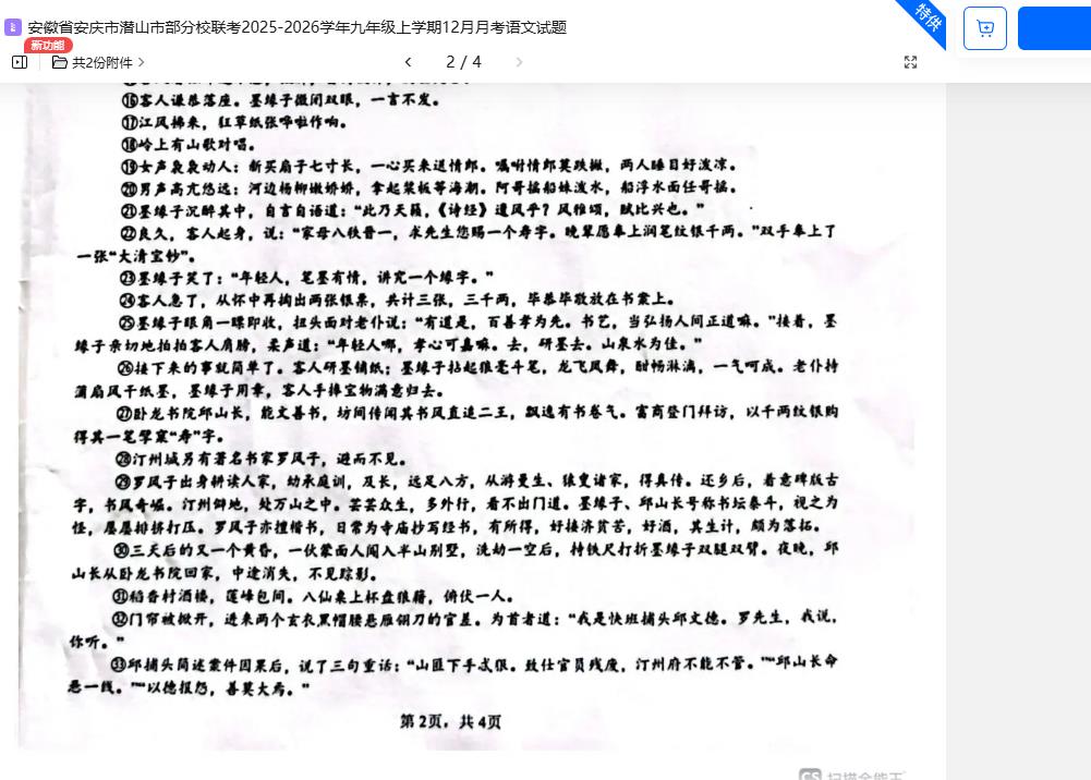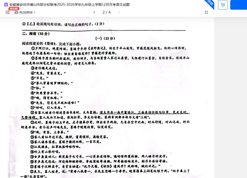 2025年12月,练建安《墨缘》入选安庆潜山中学语文试卷(截图)