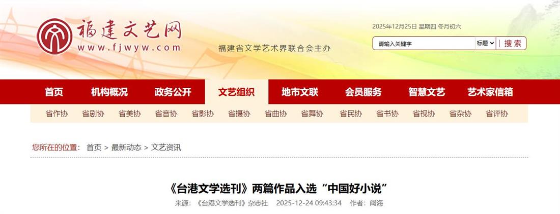 12月20日,“2025年度中国好小说”评选揭晓,《台港文学选刊》2篇小小说入选。