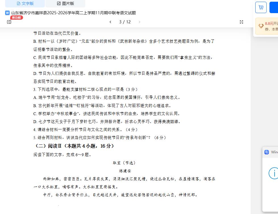 第14篇作品,第2000张试卷(约数),详见“客家通”练建安专栏。练建安新作品《取宝》入选山东省济宁市嘉祥县中学(高二)语文试卷(全)