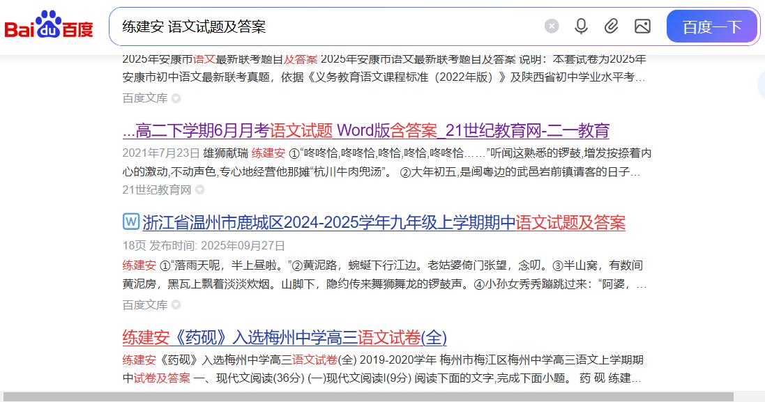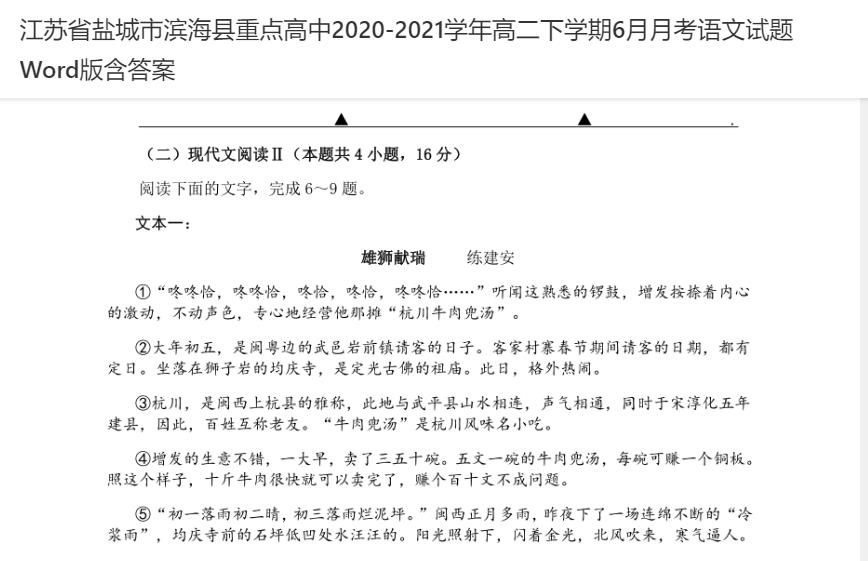21世纪教育网:练建安《雄狮献瑞》入选盐城市滨海县重点高中语文试卷(截图)