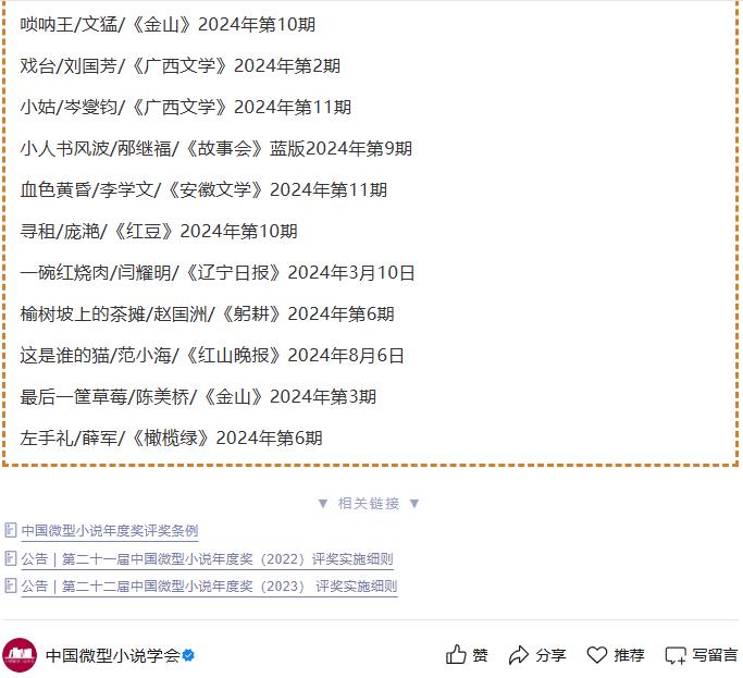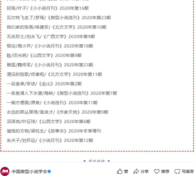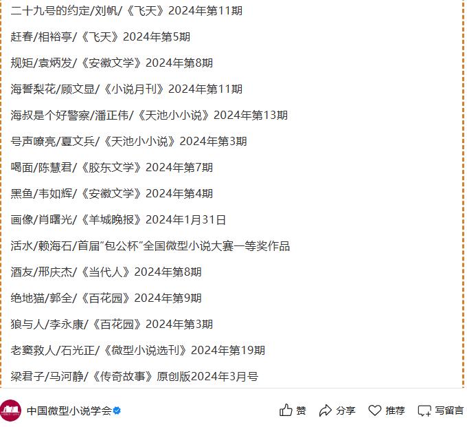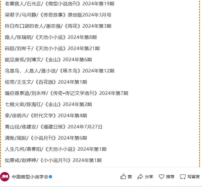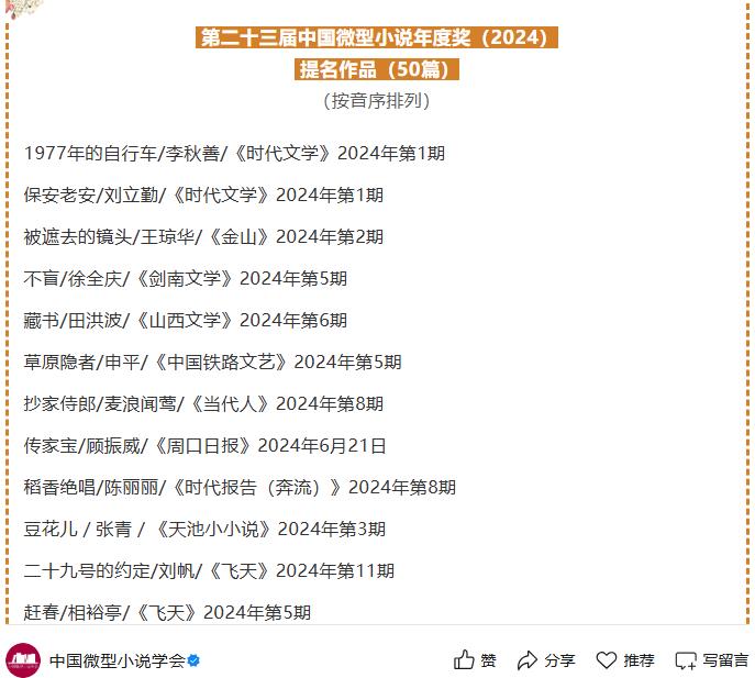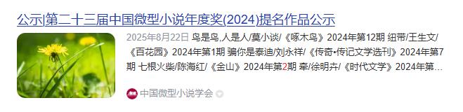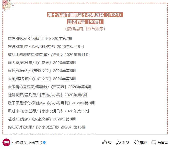 练建安《我们家的张燕》《青山径》入选两届中国微型小说年度提名作品(50篇)