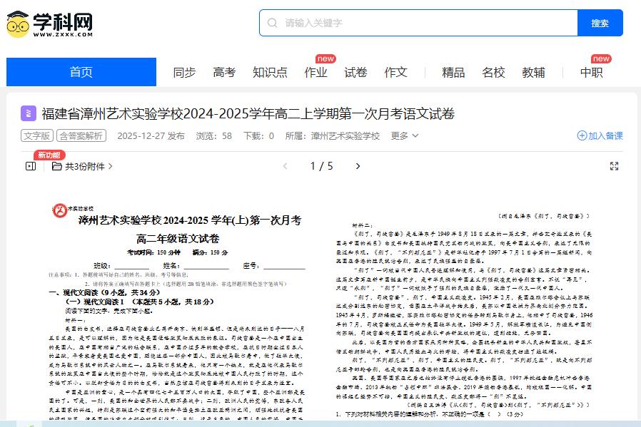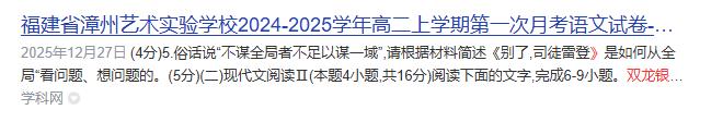 练建安《双龙银圆》入选漳州艺术实验学校2024--2025学年高二上学期第一次月考语文试卷(截图)